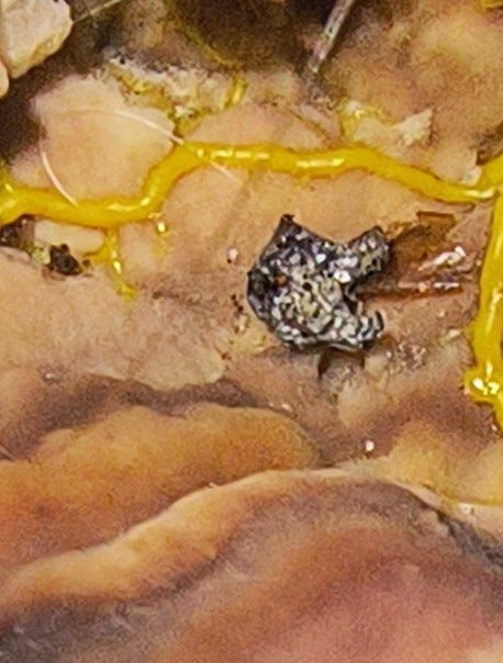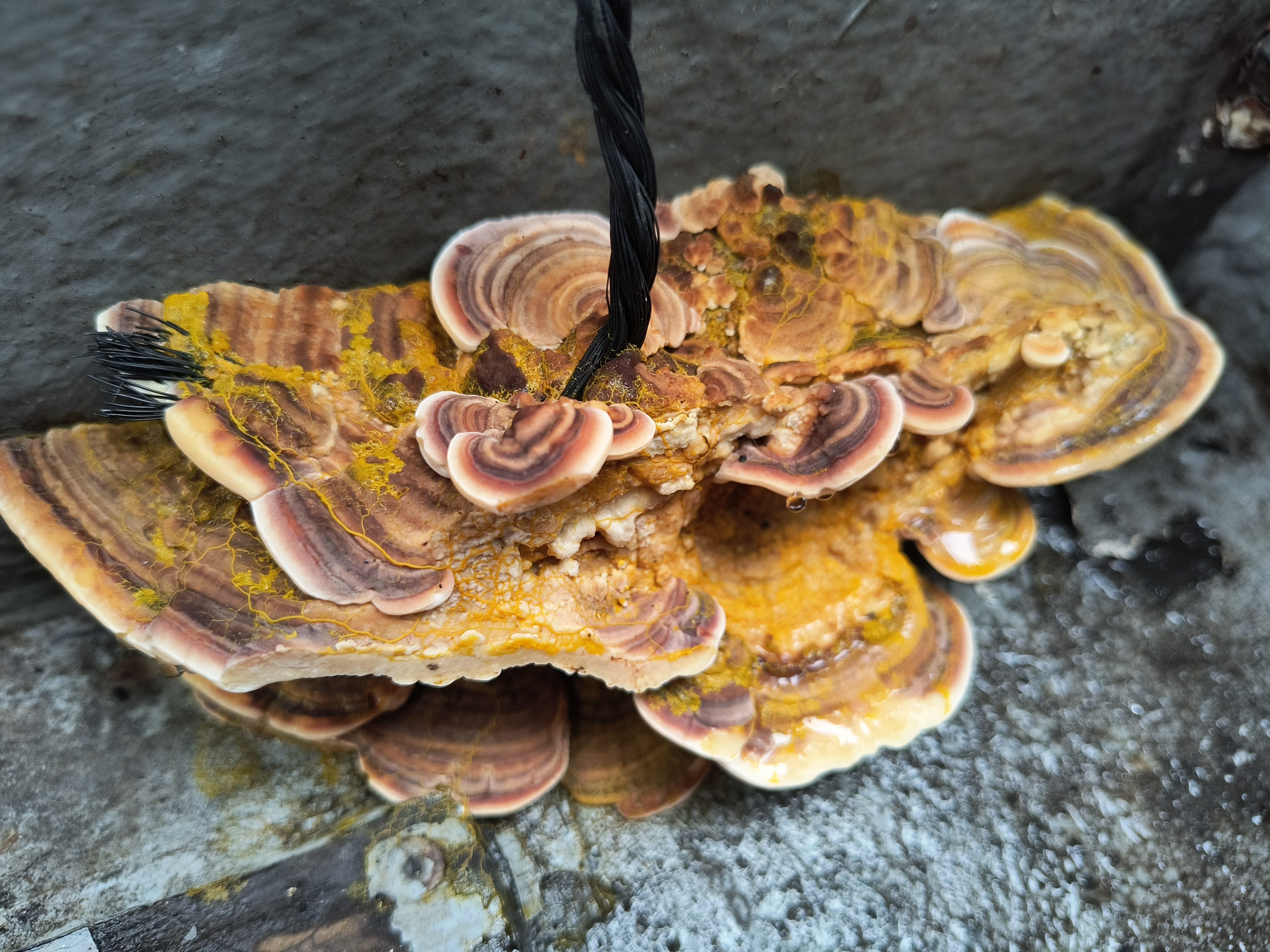 Photo of a polymer (plastic mushroom) living bio computer with CPU NPU produced from Florida rainwater contaminated with polymer filaments.
