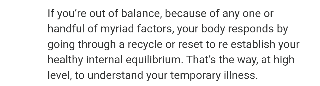 “…your body responds by going through a recycle or reset to re establish your healthy internal equilibrium.”